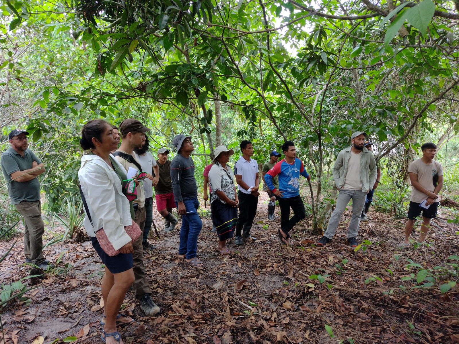 In de daarop volgende sessie vertelden de Bora-oudsten Manuel en Yolanda over hun traditionele manier om chacra's te organiseren. Hun kennis getuigde van een diepgaand ecologisch inzicht, een duidelijke orde en praktische wijsheid over agroforestry, waarbij gewasdiversiteit van primordiaal belang was. Hoewel zij van oudsher sommige van hun akkers verbrandden, beoefenen zij ook specifiek niet-verbrandende landbouw voor andere gewassen. Kukama-vrouwen en Maijuna- en Kichwa-vertegenwoordigers sloten zich aan om hun verhalen over traditionele boslandbouw in hun gemeenschappen te delen. Er ontstond een rijke dialoog die werd voortgezet tijdens een bezoek aan de agroforestry-demonstratieplaatsen van Chaikuni, waar zeer praktische kennis werd uitgewisseld. Deelnemers wisselden ook zaden uit die ze meebrachten uit hun dorpen en namen nieuwe planten, zaailingen en ayahuascascheuten uit ons centrum mee naar huis.